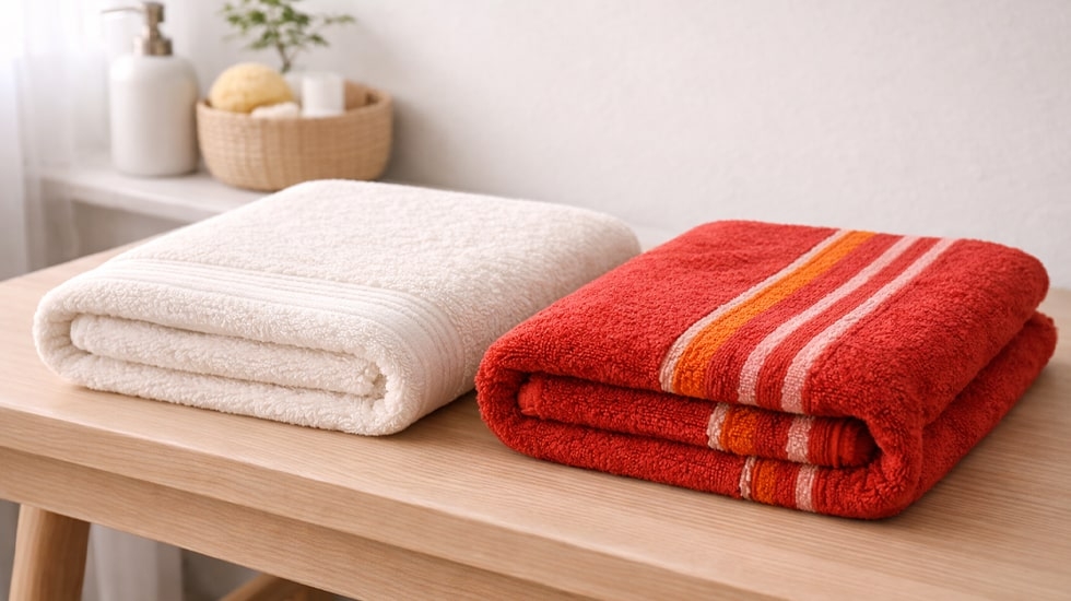 در خرید توجه کنید که حوله براق و نازک نباشد، چون نشاندهنده کیفیت پایین نخ است. لمس سطح حوله و تست جذب با چند قطره آب از نشانههای خوب بودن کیفیت هستند. برای مبتدیها بهترین پیشنهاد انتخاب حوله پنبهای با پرزهای کوتاهتر است چون هم شستشوی راحتتری دارد و هم دیرتر پرزکشی میشود.