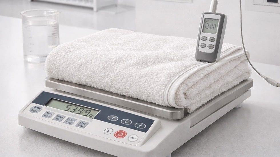 قدرت آبگیری حوله یکی از معیارهای کلیدی کیفیت است. سادهترین روش، قرار دادن وزنه آب روی نمونه و اندازهگیری زمان جذب است. در کارخانههای حرفهای، از دستگاههای آزمایشگاهی استاندارد استفاده میشود. این تست تعیین میکند حوله برای کاربردهای مختلف (حمامی، دستی، استخری) مناسب است و نرمی و جذب بهینه حفظ شود.
