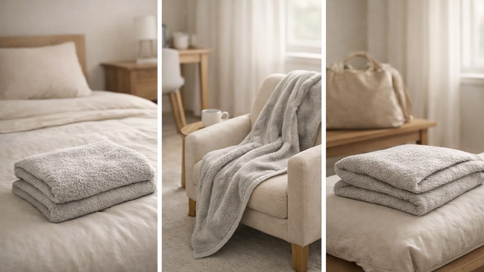 برای استفاده روزمره در خانه یا خودرو، پتوهای میکروفایبر و فلیس سبک بهترین گزینه هستند. این مدلها نرم، سبک و قابل شستشو در ماشین لباسشویی هستند و فضای زیادی اشغال نمیکنند. اگر به دنبال گرمای بیشتر هستید، مخصوصاً در فصل سرد، پتوهای فلیس ضخیم یا پشمی گزینه مناسبی هستند؛ این مدلها گرما و لطافت بالاتری دارند و برای شبهای خنک ایدهآلاند.